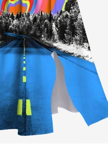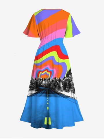Plus Size Highway Colorful Striped Tree Forest Print Split Pocket A Line Dress - Multi-a - L