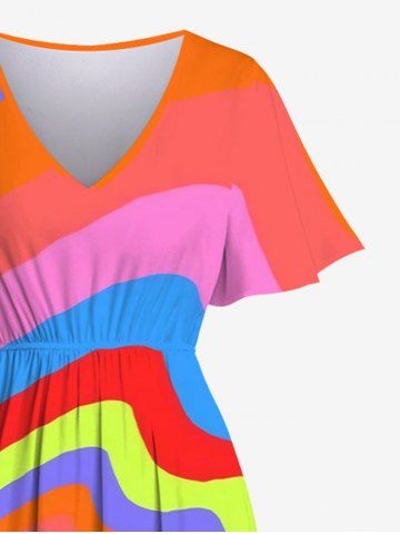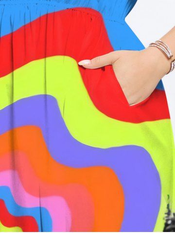 Plus Size Highway Colorful Striped Tree Forest Print Split Pocket A Line Dress - Multi-a - 1x