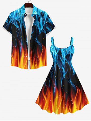 Graphic Dresses > Plus Size Ice and Fire Flame Glitter Dots Print Tank Dress