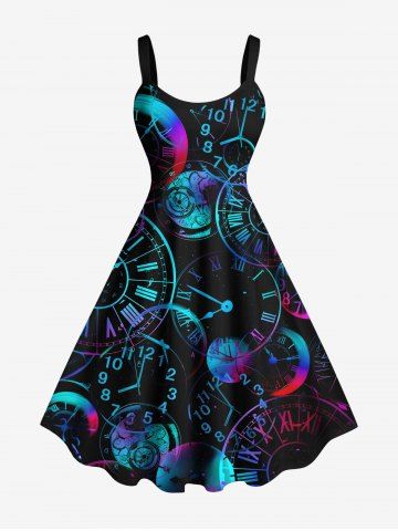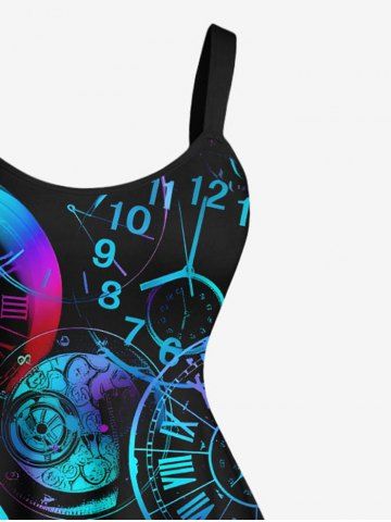 Graphic Dresses > Plus Size Industrial Style Clocks Print Tank Dress