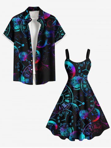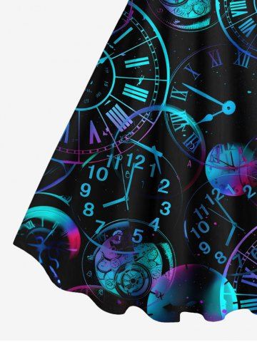 Graphic Dresses > Plus Size Industrial Style Clocks Print Tank Dress