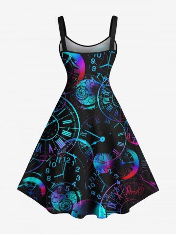 Plus Size Industrial Style Clocks Print Tank Dress - Black - 6x