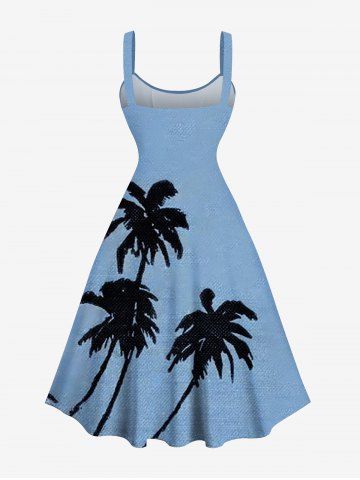 Plus Size Ink Painting Coconut Tree Print Hawaii Lace Up A Line Tank Dress - Blue - 4x