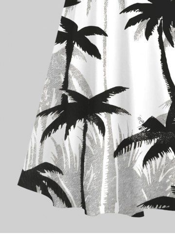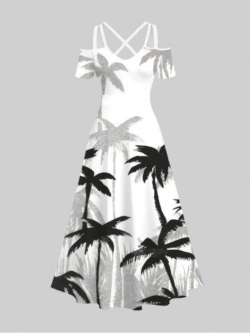 Plus Size Ink Painting Coconut Tree Print Hawaii Ombre Crisscross A Line Maxi Dress - White - 5x