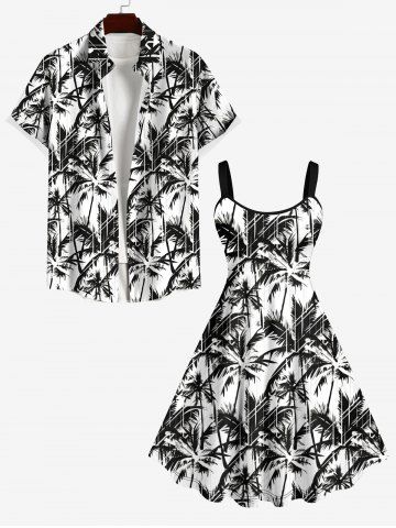 Plus Size Ink Painting Coconut Tree Print Hawaii Tank Dress - Black - S