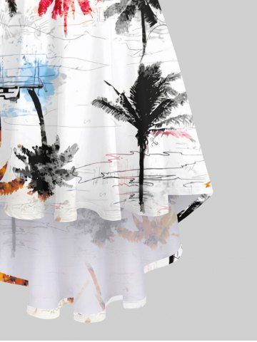 Plus Size Ink Painting Colorful Coconut Tree Print Hawaii High Low Asymmetric Cami Dress - Crystal Cream - 2x