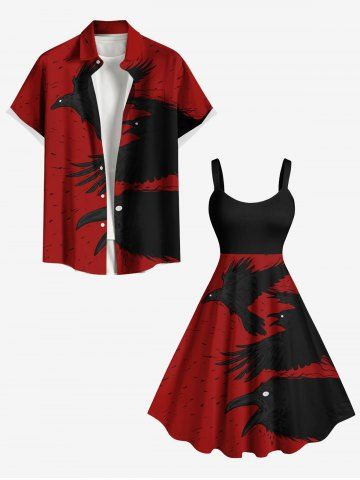 Plus Size Ink Painting Crow Print Halloween A Line Tank Dress - Red - 5x