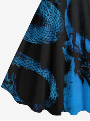 Plus Size Ink Painting Dragon Two Tone Print Hawaii A Line Tank Dress - Blue - 6x