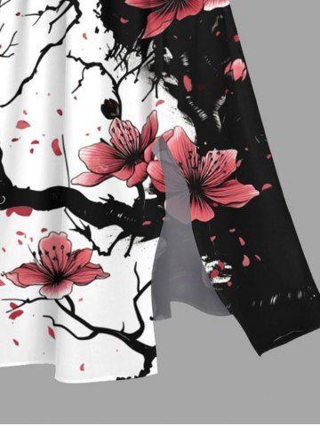 Graphic Dresses > Plus Size Ink Painting Peach Blossom Flower Branch Print Split Hawaii Midi Dress