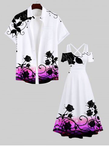 Graphic Dresses > Plus Size Ink Rose Flower Leaf Vine Print Hawaii Ombre Crisscross A Line Maxi Dress