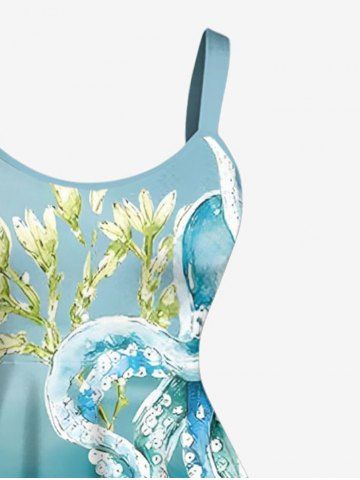 Plus Size Jellyfish Octopus Turtle Ombre Print Hawaii Tank Dress - Sky Blue - Xs