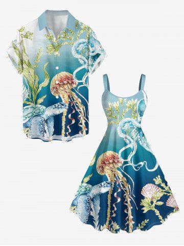 Graphic Dresses > Plus Size Jellyfish Octopus Turtle Ombre Print Hawaii Tank Dress