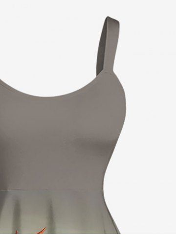 Plus Size Kung Fu Rooster Beer Print Hawaii Tank Dress - Olive Green - L