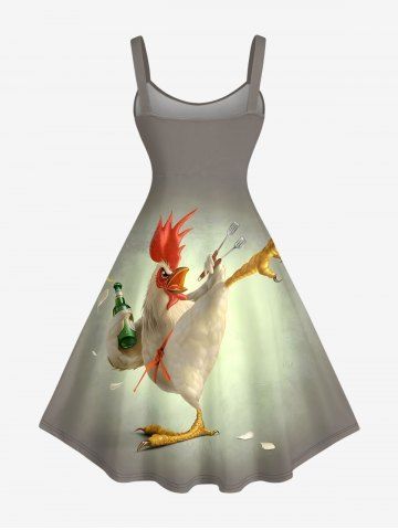 Graphic Dresses > Plus Size Kung Fu Rooster Beer Print Hawaii Tank Dress