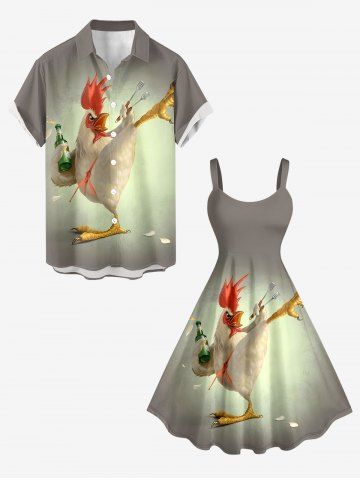 Graphic Dresses > Plus Size Kung Fu Rooster Beer Print Hawaii Tank Dress
