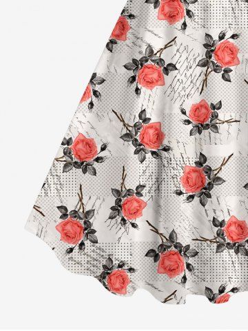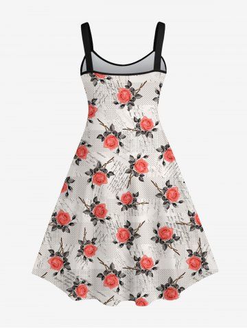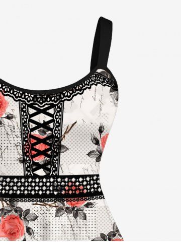 Graphic Dresses > Plus Size Lace-up Rose Flower Leaf Lace Trim Appliques 3D Print Tank Dress