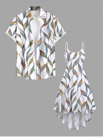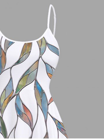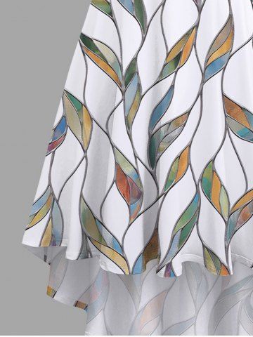 Plus Size Leaf Branch Colorblock Print Hawaii High Low Asymmetric Cami Dress - White - 1x