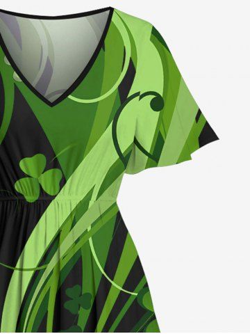 Graphic Dresses > Plus Size Leaf Clover Curve Print St. Patrick's Day Hawaii Split Pocket A Line Midi Dress