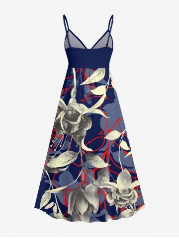 Graphic Dresses > Plus Size Leaf Flower Branch Print Hawaii Surplice A Line Cami Dress