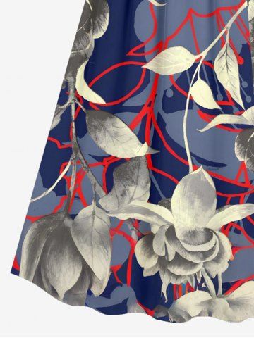 Graphic Dresses > Plus Size Leaf Flower Branch Print Hawaii Surplice A Line Cami Dress