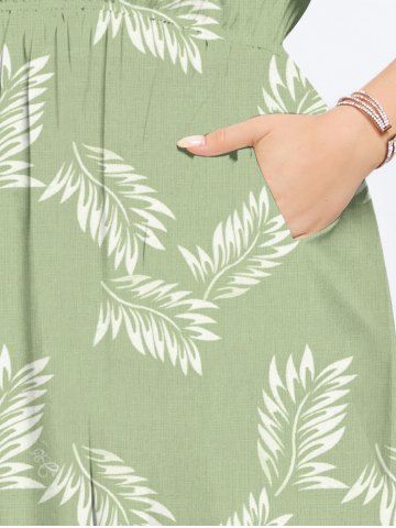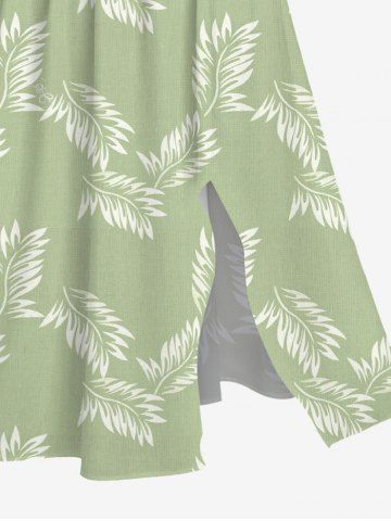 Plus Size Leaf Print Split Hawaii Midi Dress - Light Green - Xs