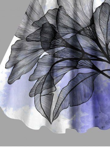 Plus Size Leaf Watercolor Ombre Print Hawaii A Line Tank Dress - Black - Xs