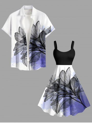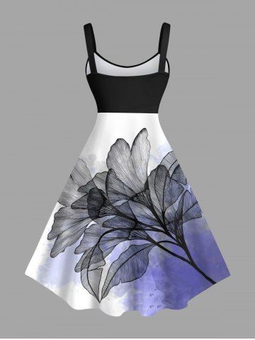 Plus Size Leaf Watercolor Ombre Print Hawaii A Line Tank Dress - Black - M