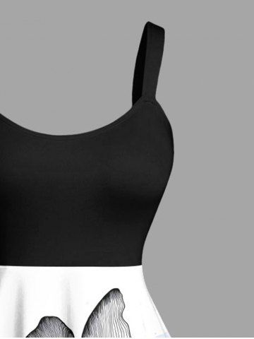 Plus Size Leaf Watercolor Ombre Print Hawaii A Line Tank Dress - Black - 6x