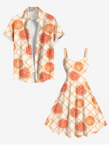Plus Size Grapefruit Geometric Plaid Print Hawaii A Line Tank Dress