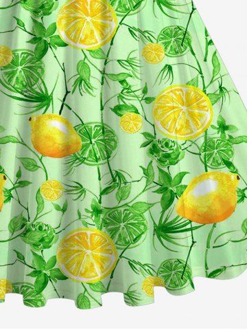 Plus Size Lemon Leaf Branch Print 1950s Hawaii Vintage Swing A Line Dress - Green - M