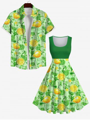 Graphic Dresses > Plus Size Lemon Leaf Branch Print 1950s Hawaii Vintage Swing A Line Dress