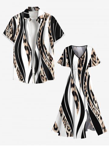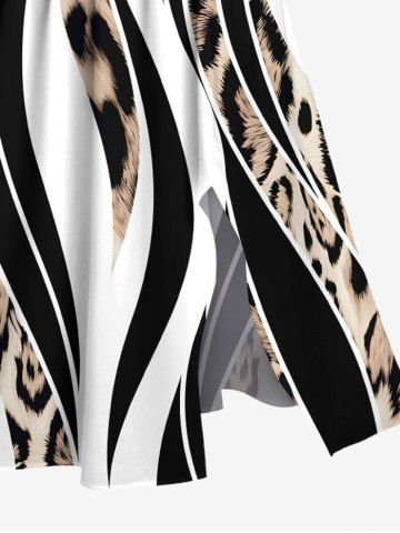 Plus Size Leopard Curve Colorblock Print Hawaii Split Pocket A Line Midi Dress - Black - S