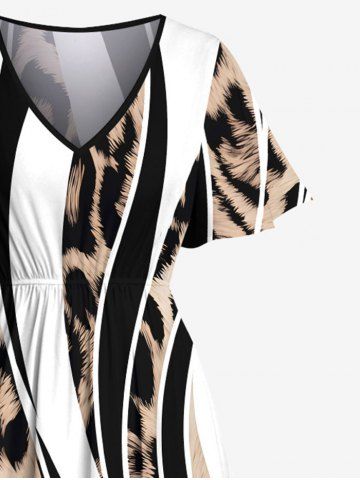 Graphic Dresses > Plus Size Leopard Curve Colorblock Print Hawaii Split Pocket A Line Midi Dress