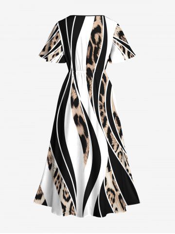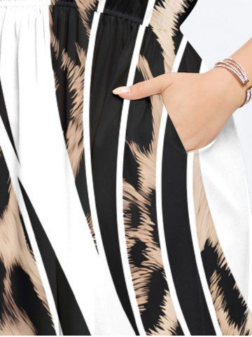 Plus Size Leopard Curve Colorblock Print Hawaii Split Pocket A Line Midi Dress - Black - 4x