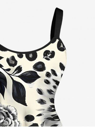 Plus Size Leopard Hibiscus Flower Leaf Print Hawaii A Line Tank Dress - Black - 6x