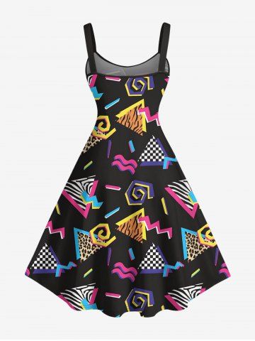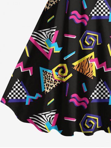 Plus Size Leopard Plaid Triangle Print Hawaii Tank Dress - Black - M