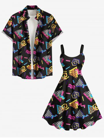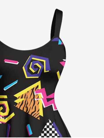Plus Size Leopard Plaid Triangle Print Hawaii Tank Dress - Black - L