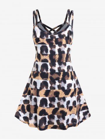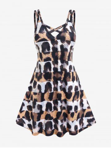 Graphic Dresses > Plus Size Animal Leopard Print Crisscross A Line Sleeveless Dress