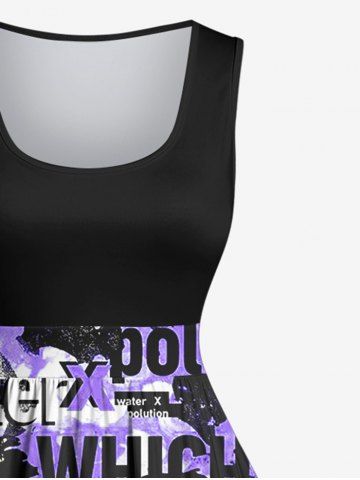 Plus Size Letters Tie Dye Print 1950s Vintage Swing A Line Dress - Multi-a - 2x