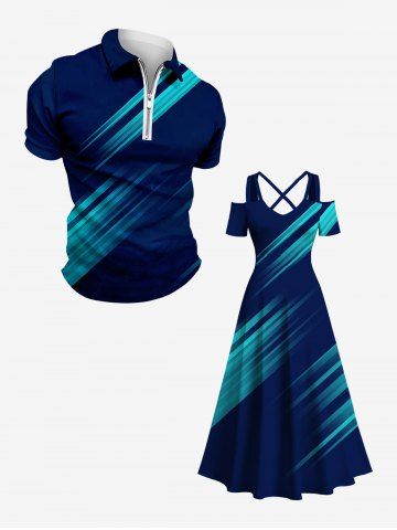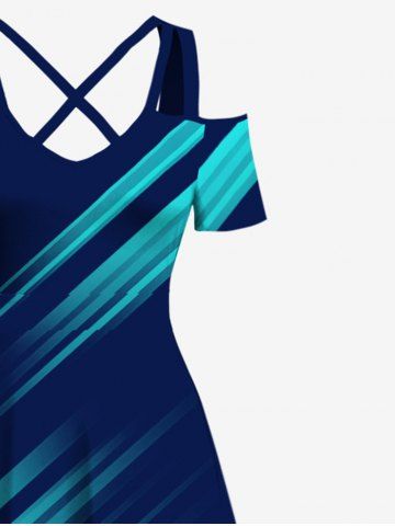 Plus Size Light Beam Print Cold Shoulder Crisscross Maxi Dress - Deep Blue - 5x