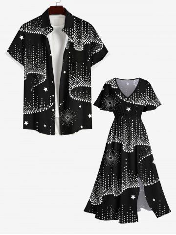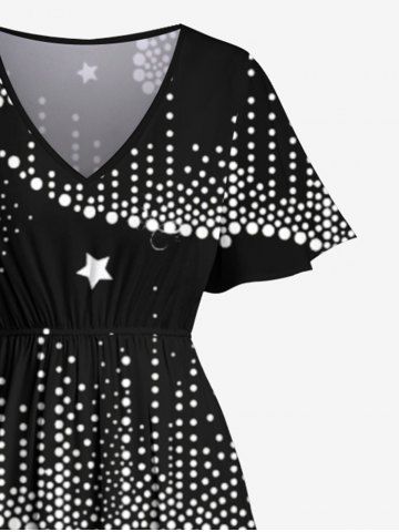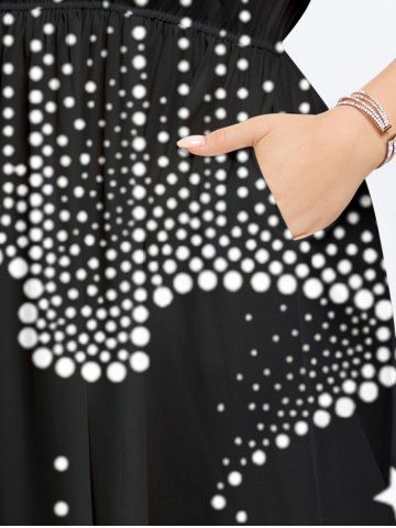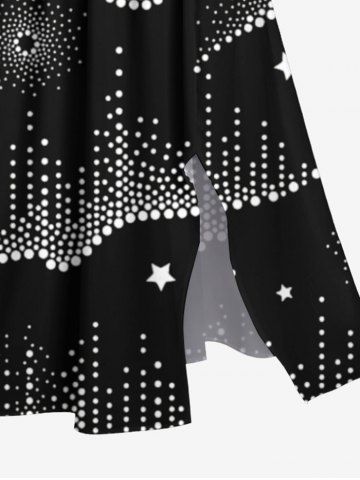 Plus Size Light Beam Tassel Chandelier Stars Print Hawaii Split Pocket A Line Midi Dress - Black - 5x
