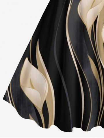 Plus Size Lily Flower Curve Print Hawaii A Line Tank Dress - Black - 6x