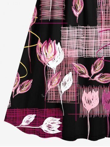 Graphic Dresses > Plus Size Line Braided Plaid Flower Print Hawaii Surplice A Line Cami Dress
