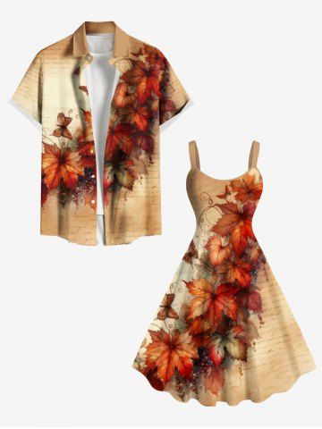 Plus Size Maple Leaf Butterfly Newspaper Print Hawaii Tank Dress - Orange - 4x