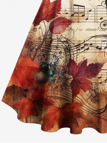 Graphic Dresses > Plus Size Maple Leaf Music Symbol Ombre Print Hawaii Button A Line Tank Dress with Removable Belt