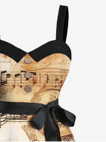 Plus Size Maple Leaf Music Symbol Ombre Print Hawaii Button A Line Tank Dress with Removable Belt - Light Brown - 1x