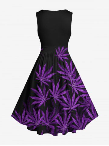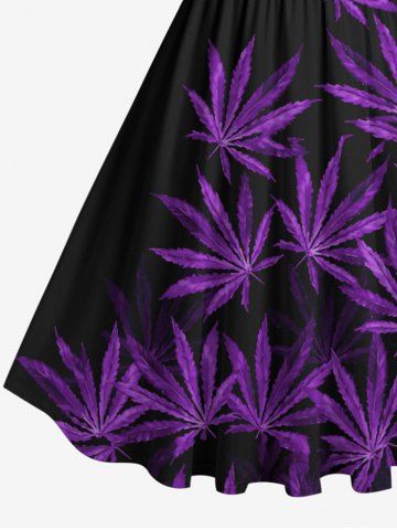 Plus Size Maple Leaf Print Hawaii 1950s Vintage Dress - Black - 2x
