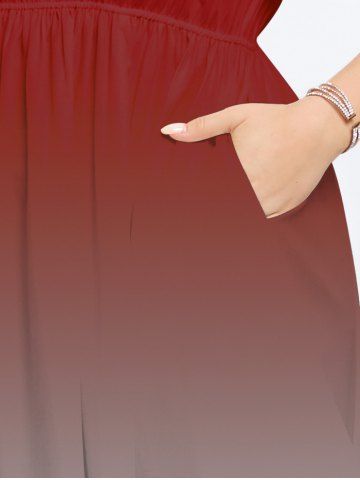 Plus Size Maple Leaves Print Hawaii Ombre Split Pocket A Line Midi Dress - Red - L