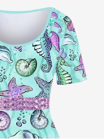 R*****i5Hawaii Plus Size Marine Life Sparkling Sequin Belt 3D Print Vintage DressColor: LIGHT BLUE Size: 4XVery cute and comfortable! I love the fit!