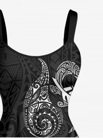 Plus Size Masks Fish Butterfly Sea Horse Ethnic Pattern Print Hawaii Tank Dress - Black - Xxs